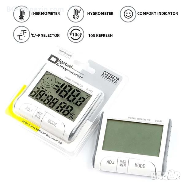 Представяме ви Дигитален термометър и влагомер със сонда – компактен и удобен инструмент, който ви позволява да следите температурата и влажността във вашия дом или офис. С негова помощ ще създадете здравословна и комфортна среда за вас и вашето семейство.