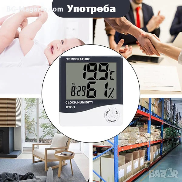 – Мултифункционалност: Уредът комбинира функциите на термометър, влагомер, часовник и календар, което го прави изключително практичен и удобен.