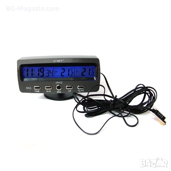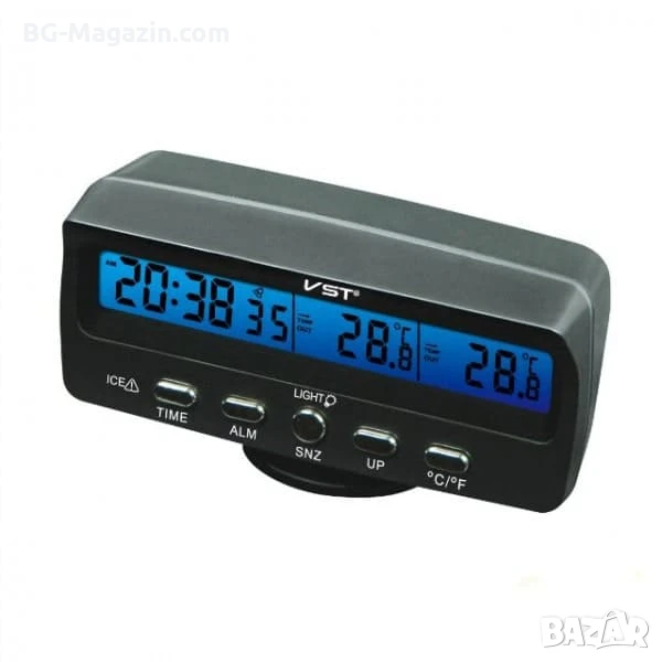 Представяме ви настолния дигитален термометър часовник и влагомер за кола със сонда – компактен и многофункционален уред, който ще ви държи информирани за времето, датата, температурата (вътрешна и външна) и ще ви събуди навреме. С голям LCD дисплей и множество функции, този часовник е идеален за използване у дома или в автомобила.