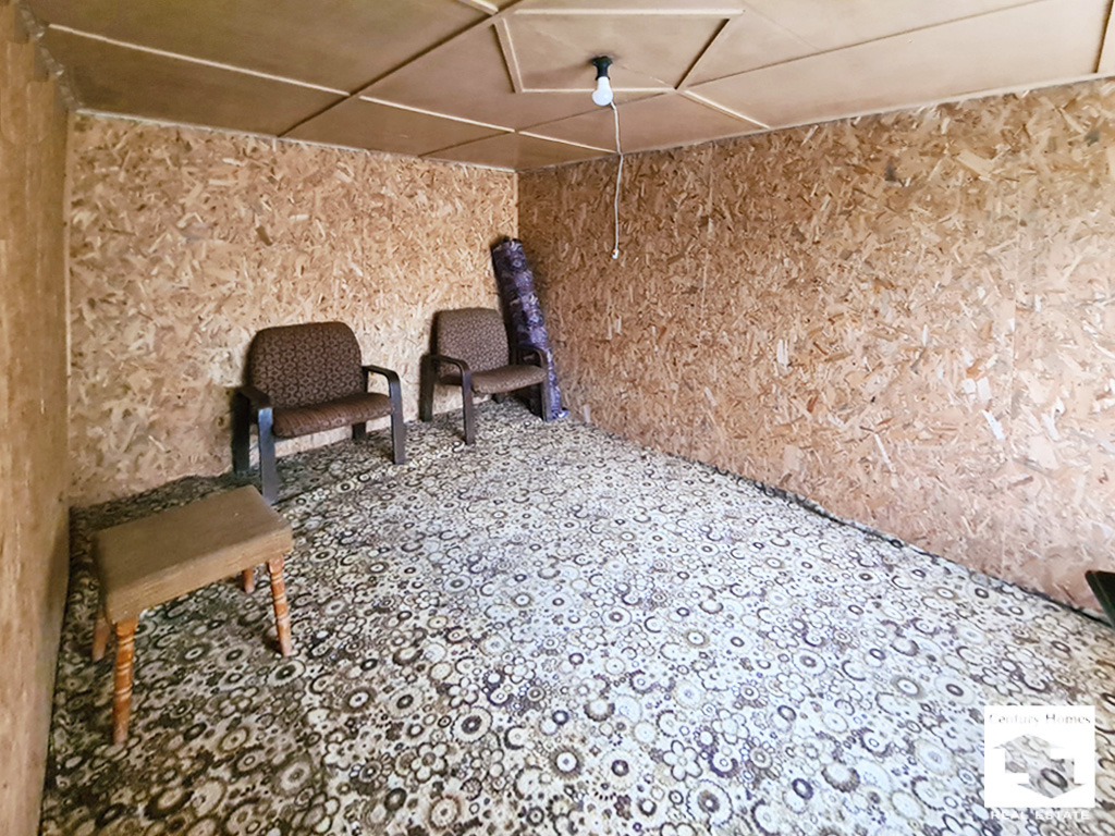 дървени врати и дограма, подови настилки с мокет и боядисани стени. Налични са партиди за ток и вода, както и две септични ями.