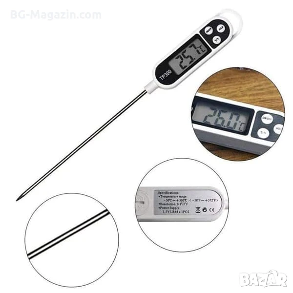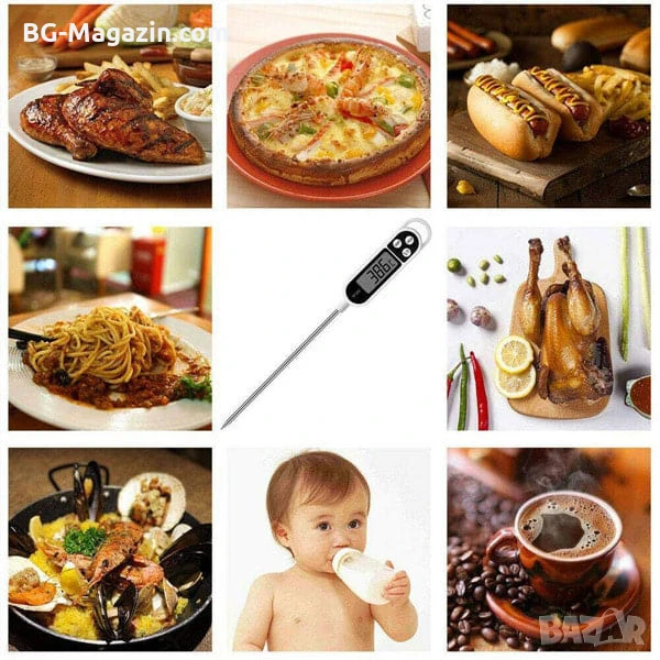– Мултифункционалност: Подходящ за измерване на температурата на различни видове храни и течности – месо, птици, риба, мляко, вода, олио и др.