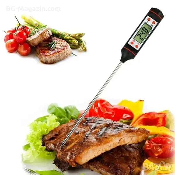 – Мултифункционалност: Подходящ за измерване на температурата на различни видове храни и течности – месо, птици, риба, мляко, вода, олио и др.