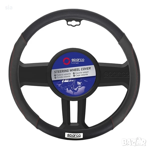 Калъф за волан, черен с червен конец, универсален за леки автомобили