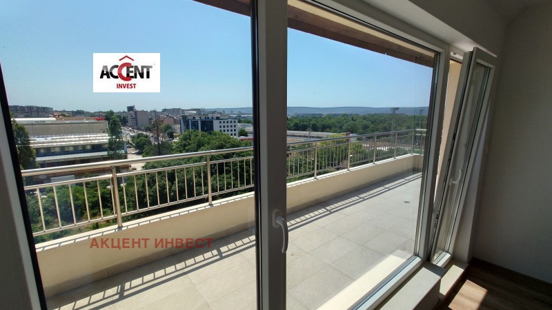 KOD 21483 'Акцент Инвест' Ви предлага офис помещение под наем, в района след 'Гранд Мол'. Имотът е с обща площ от 83кв.м. и се намира на 7-ми етаж в нова сграда. Състои се от коридор, две работни помещения, баня с тоалетна, склад и тераса. Имотът се предлага без обзавеждане, посочената цена е без включен ДДС. Обектът е оборудван с бойлер, два климатика, СОТ система, щори. Допълнително се заплаща такса поддръжка, допълнително може да се наеме паркомясто.