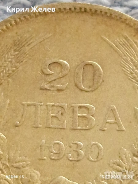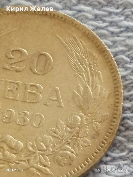 Сребърна монета 20 лева 1930г. Царство България Цар Борис трети за КОЛЕКЦИЯ 26317 → Обява 51029111
