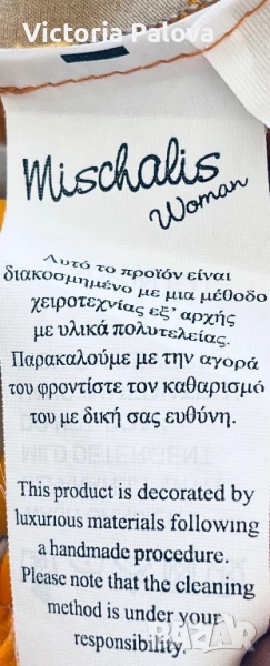 MISCHALIS е дизайнерска марка, специализирана в елегантни и изискани дамски дрехи с уникални детайли и архитектурни силуети, фокусирана върху луксозни материи и изработка. Дизайните на MISCHALIS са известни със своята модерна и стилна естетика, често включваща смели флорални принтове, скулптурни елементи и смесица от класически и съвременни стилове. Блузата е от
