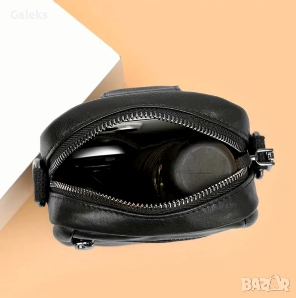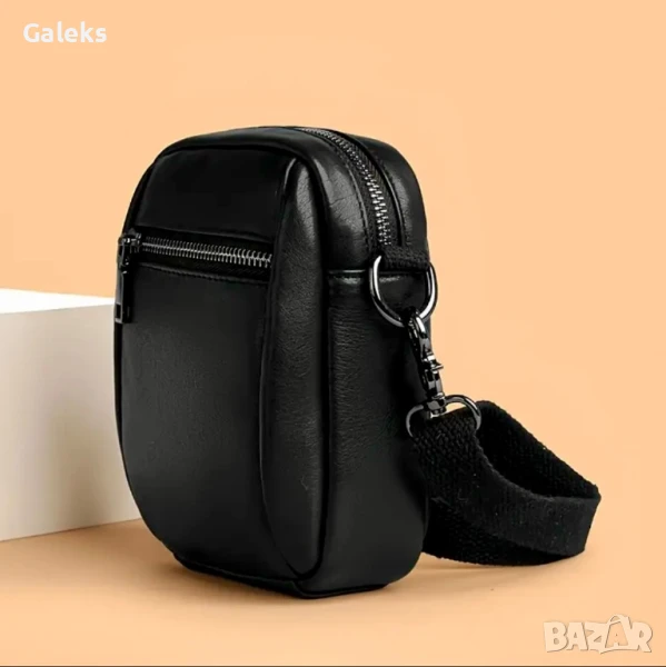 Малка, Компактна Лятно/ваканционна чантичка с презрамки (Черна естествена кожа)