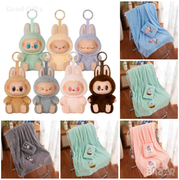 Таг: ключодържател Лабубу, комплект Лабубу подарък, хавлия и кърпа комплект, подарък за дете, подарък за жена, плюшен ключодържател, Have a Seat, баня аксесоари, цветни кърпи, сладък подарък комплект, меко хавлиено бельо