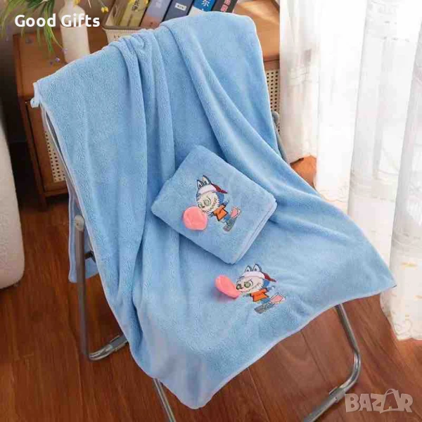 Хавлията и кърпата се предлагат в нежен розов, сив, син или зелен цвят и са изключително приятни на допир – идеални за попиване след баня или освежаване през деня. Това е страхотна идея за подарък както за деца, така и за възрастни, съчетавайки функционалност с доза закачливо настроение!