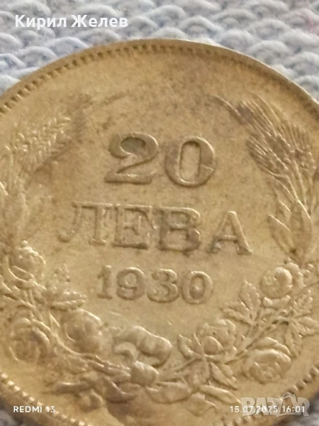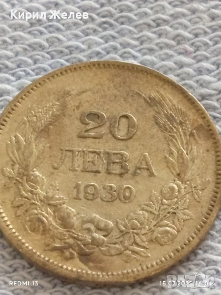 Сребърна монета 20 лева 1930г. Царство България Цар Борис трети за КОЛЕКЦИЯ 25334 → Обява 51029738