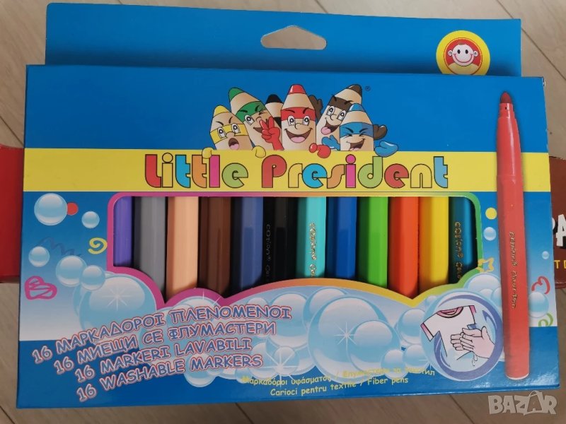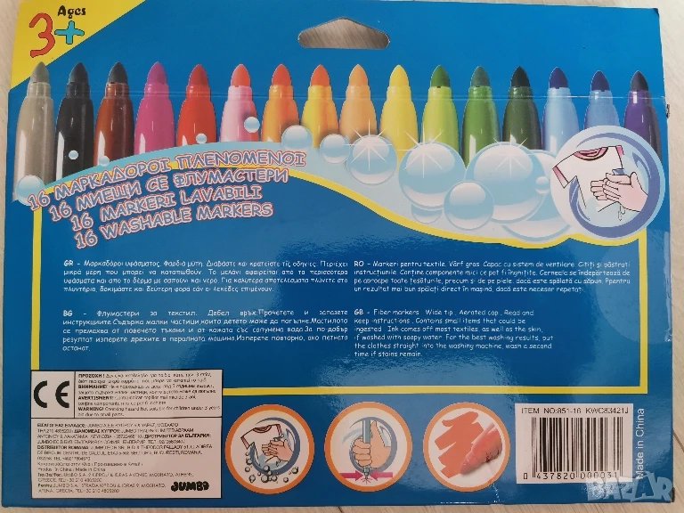 16 броя миещи се флумастери. Флумастери за рисуване върху текстил. Дебел връх. Мастилото се премахва от повечето тъкани и от кожата със сапунена вода. Изпращам с Еконт или Спиди с опция преглед.
