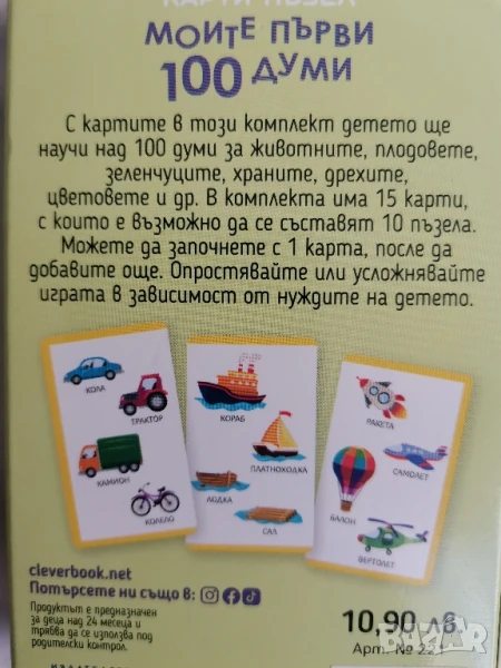 Карти-пъзел "Моите първи 100 думи" → Обява 51030328