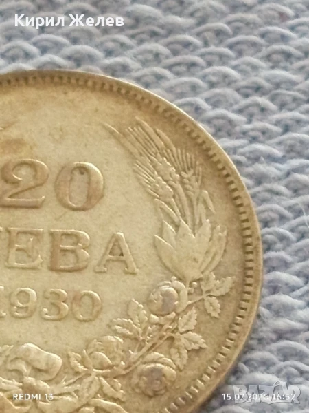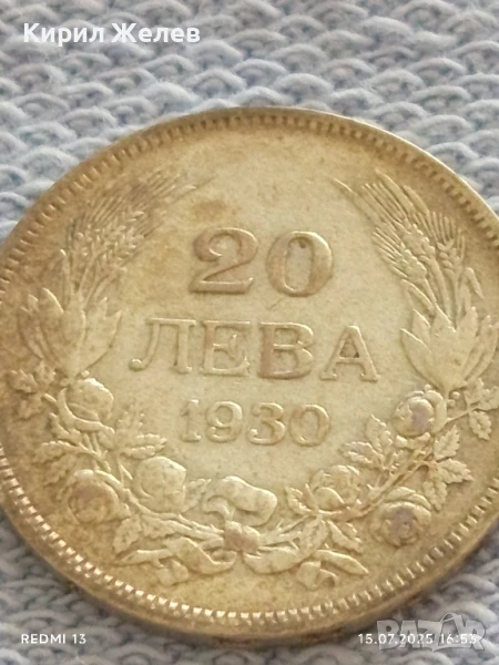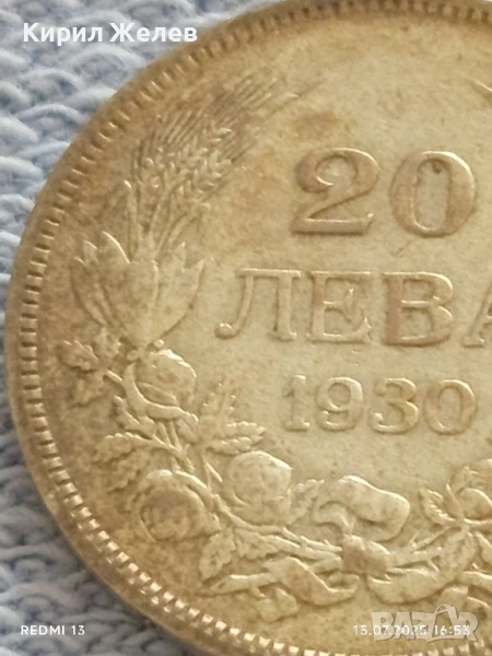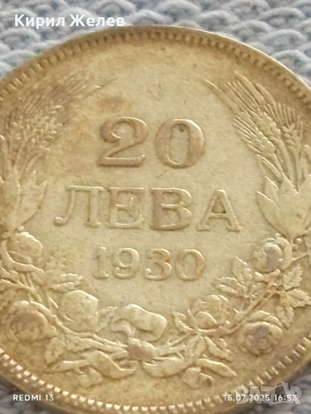 Сребърна монета 20 лева 1930г. Царство България Цар Борис трети за КОЛЕКЦИЯ 28580