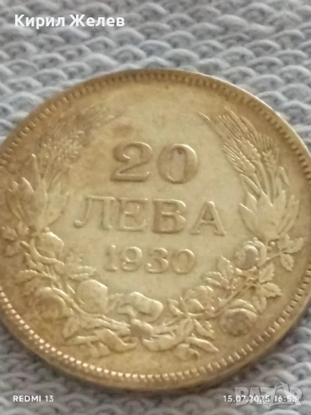 Сребърна монета 20 лева 1930г. Царство България Цар Борис трети за КОЛЕКЦИЯ 28580 → Обява 51030473