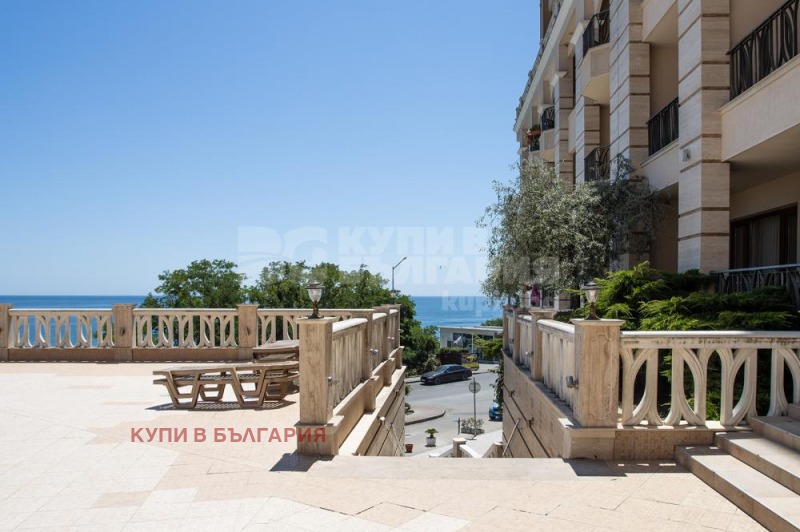 'Купи в България' ви предлага за продажба просторен двустаен апартамент с площ от 82 кв.м, разположен на първи етаж от общо осем в елегантен комплекс от затворен тип с басейн, само на 300 метра от плаж Кабакум. Имотът е част от престижен жилищен комплекс, подходящ за целогодишно живеене, ваканционен имот или инвестиция с висока възвръщаемост от наем.
