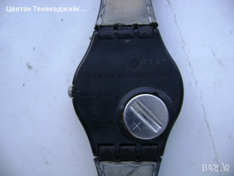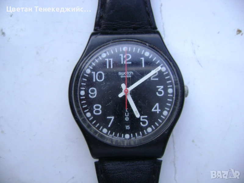 4.Кварцов часовник Swatch.Работи точно.Датник с ден от седмицата и дата.Оригинална кожена каишка -25лв.