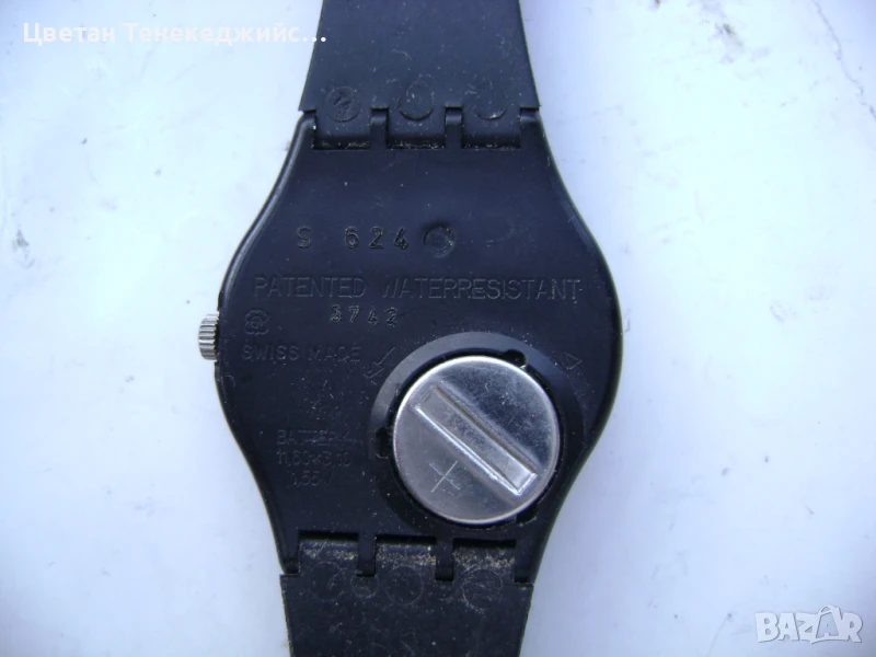 3.Кварцов часовник Swatch.Работи точно.Лого @.Водоустойчив.Произведен 1995г.Диаметър на касата без коронката 33,6мм.Оригинална полимерна каишка-20лв.Продаден.