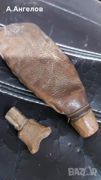 Старинна, оригинална, ХАЙДУШКА барутница от кожа. Ръчно изработена . Дължина- 17см.