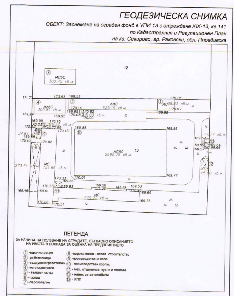 Спомагателни сгради работилници, административна част, котелно, склад, портиерна и незавършена топлоцентрала;