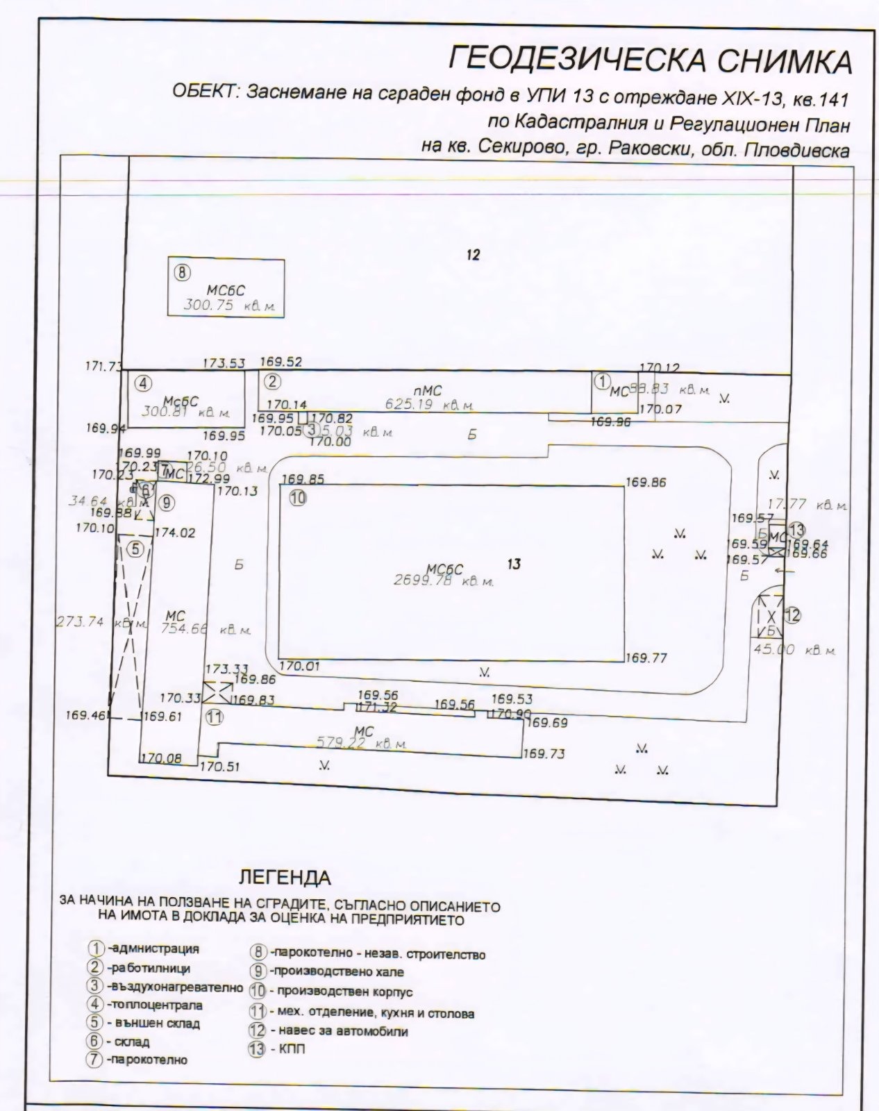 Продава се урегулиран поземлен имот с площ 12 579 кв.м в гр. Раковски, заедно с комплекс от производствени, складови, административни и спомагателни сгради с обща застроена площ над 4 400 кв.м.