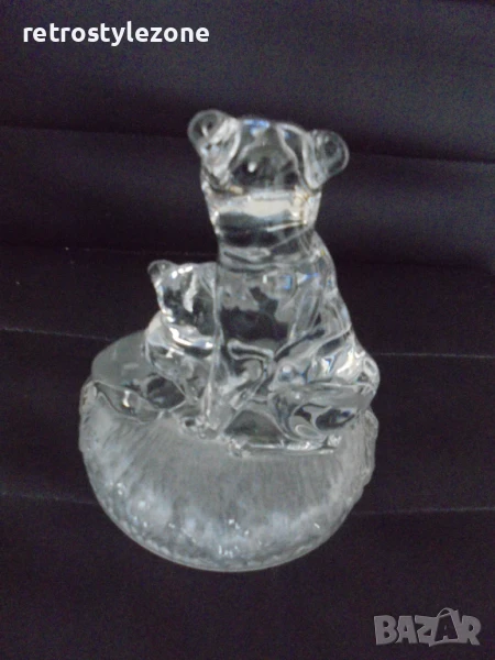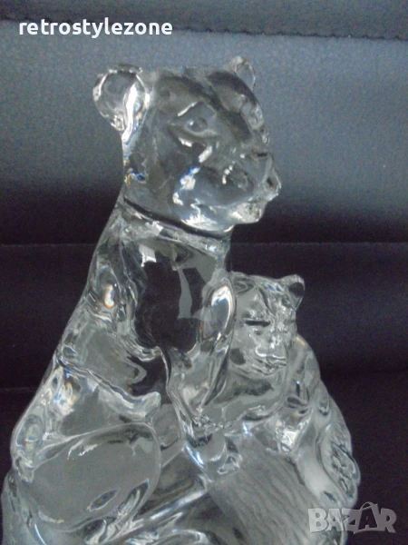 - стъклена декоративна фигура, изобразяваща лъв с малкото си лъвче – символ на сила, закрила и семейство. Изящна изработка от прозрачно стъкло, подходяща както за декорация, така и като стилен подарък.