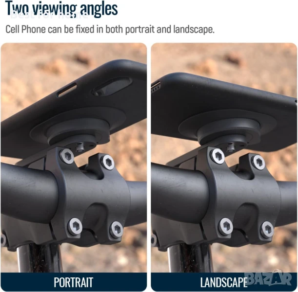- 【Перфектно гледане】- Стойката за телефон на кормилото на велосипеда ви позволява да получите перфектния ъгъл на гледане и лесно да регулирате екрана на телефона си хоризонтално или вертикално. Това е чудесно решение за видимост на Google Maps за навигация, използване на фитнес приложение и слушане на музика, докато карате.