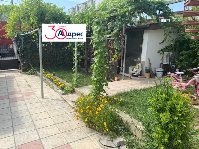 Адрес недвижими имоти продава двуетажна къща с гараж, лятна кухня и малък двор в началото на ул.Дунав . Имотът е газифициран и се състои от партерен етаж, включващ дневен тракт с кухненска част, две спални, баня с тоалетна и коридор; втори етаж- две спални, баня с тоалетна и коридор и голяма маза.