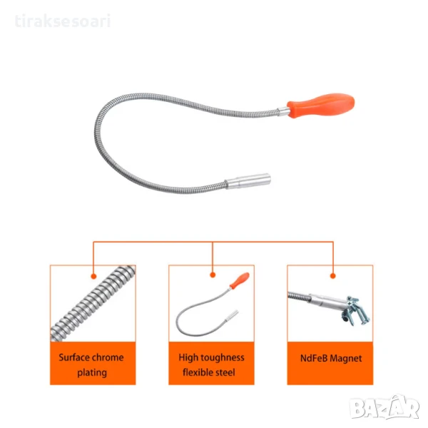 магнитно удължение, гъвкаво рамо, магнит с дръжка, телескопичен магнит, инструмент за трудно достъпни места, магнитен инструмент, магнит за болтове, магнит за винтове, 52 см магнит, авто аксесоар, гъвкав магнит, пластмасова дръжка, магнитен уред.