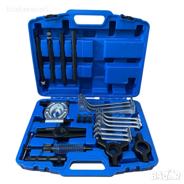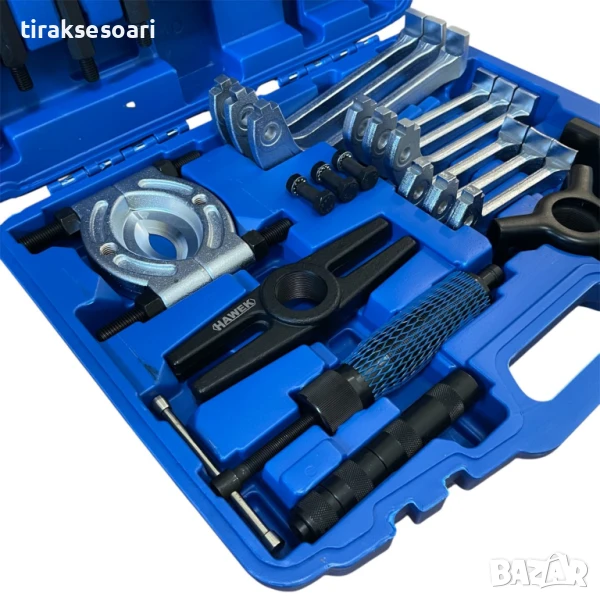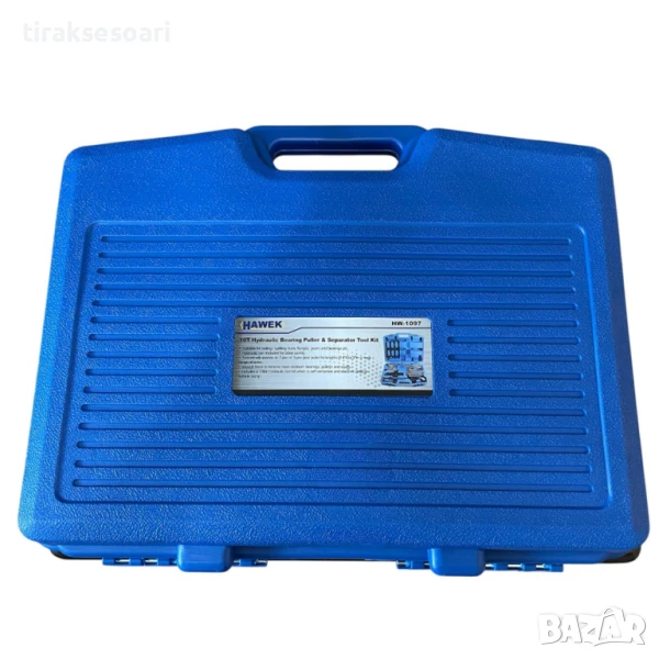 хидравличен комплект, скоби за лагери, сепаратор за лагери, комплект 10 тона, HAWEK HW-1097, инструмент за лагери, лагерен сепаратор, хидравличен лагерен инструмент, автоинструмент за лагери, професионален комплект, изтегляч за лагери,
