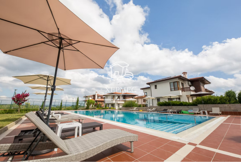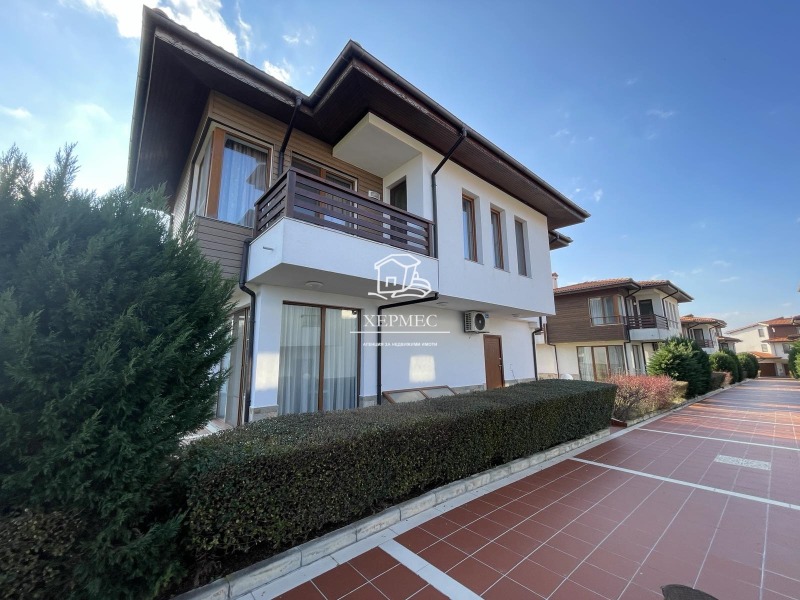 Агенция Хермес има удоволствието да Ви представи впечатляваща двуетажна къща с площ от 241 кв.м, разположена в престижния и затворен комплекс Тракийски бряг - място, където морето среща спокойствието, естетиката и сигурността.