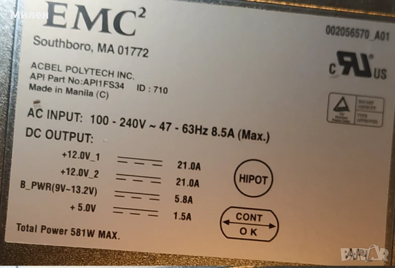2x EMC2 API1FS34 581W - 20 Eur; едното сървърно захранване е без 2то крайни транзистора, 10 Eur(ремонтирах друго захранване с тях)