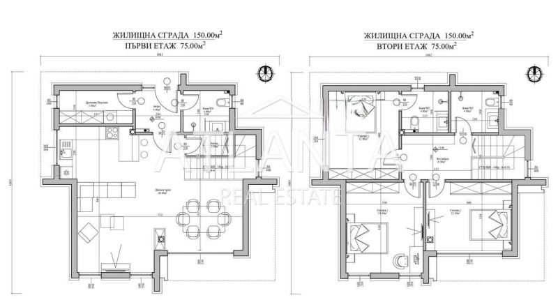В/две дуветажни къщи ще бъдат с площ от 240 кв.м. като всяка една от тях е с партерен гараж
