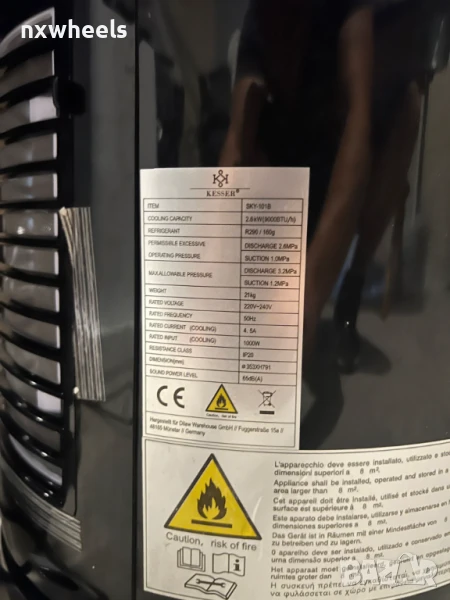 Мобилен климатик KESSER с мощност 950 вата, охлаждаща мощност 9000 BTU