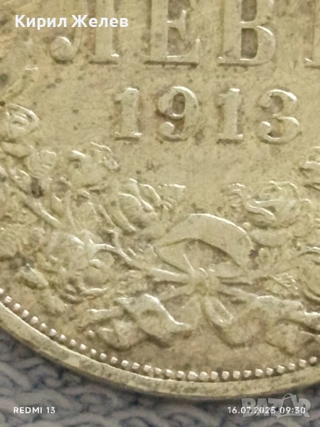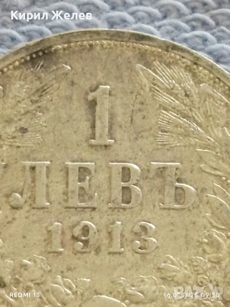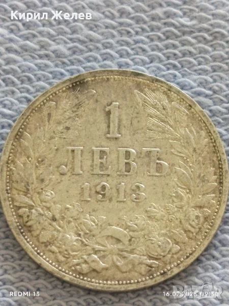 Сребърна монета 1 лев 1913г. Царство България Цар Фердинанд първи за КОЛЕКЦИЯ 43822