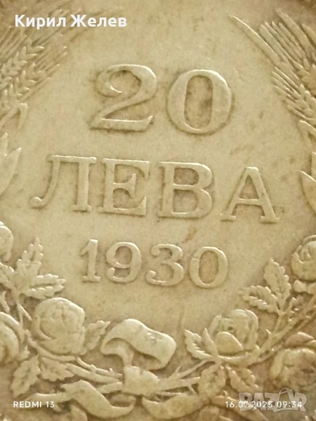 Сребърна монета 20 лева 1930г. Царство България Цар Борис трети за КОЛЕКЦИЯ 37466 → Обява 51036298