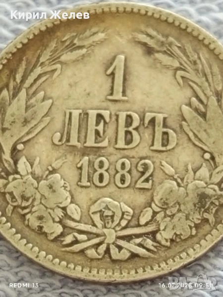 Сребърна монета 1 лев 1882г. Княжество България Княз Фердинанд първи за КОЛЕКЦИЯ 25681