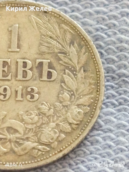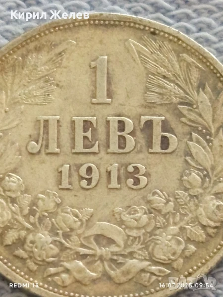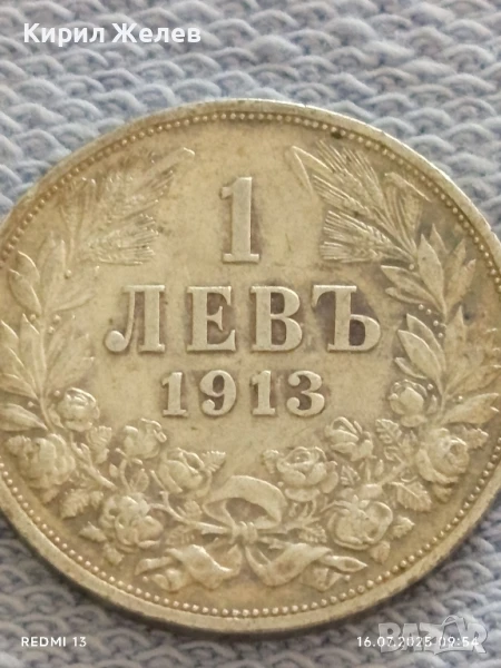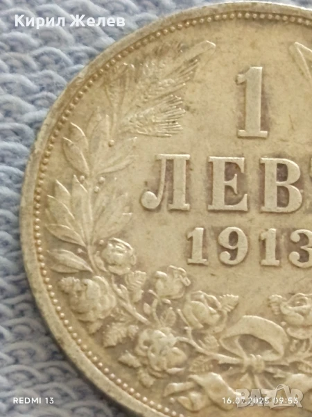 Сребърна монета 1 лев 1913г. Царство България Цар Фердинанд първи за КОЛЕКЦИЯ 40652