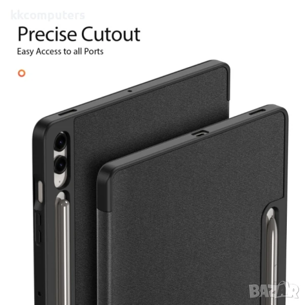 Приляга идеално към Таблета. Защитава гърба, дисплея и в същото време има приятен и класически дизайн - тип книга. Не увеличава размера на Вашия Samsung Galaxy Tab S9 FE+ съществено.