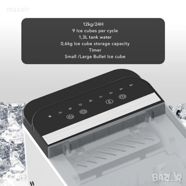 - Произвежда до 12 кг лед на ден и 9 кубчета лед на цикъл