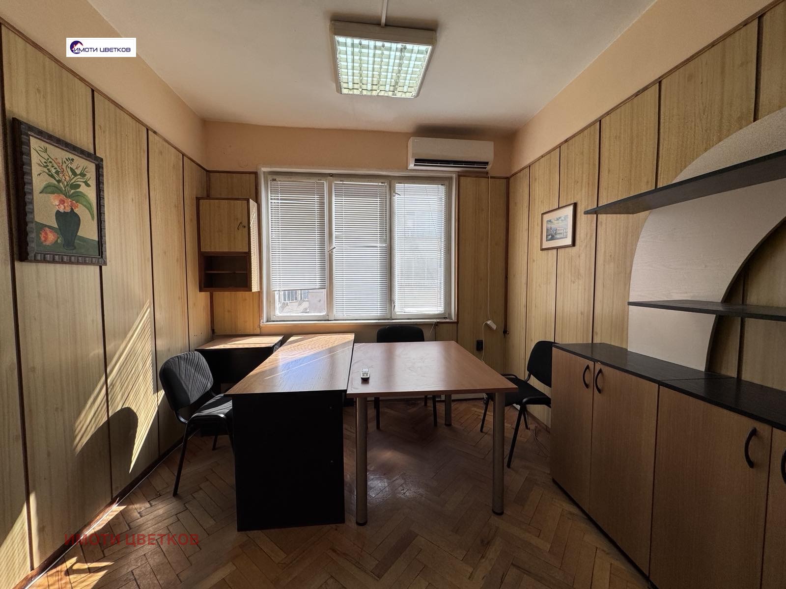 Самостоятелен етаж в административна сграда, в идеалния център на града, на пешеходната зона, състоящ се от шест отделни помещения и два санитарни възела. Предназначение: за делова и административна дейност. Подходящ за счетоводна, художествено-творческа и образователна дейност, застрахователен/кредитен офис. Прилежаща част от самостоятелния обект е сутеренен етаж /мазе/.