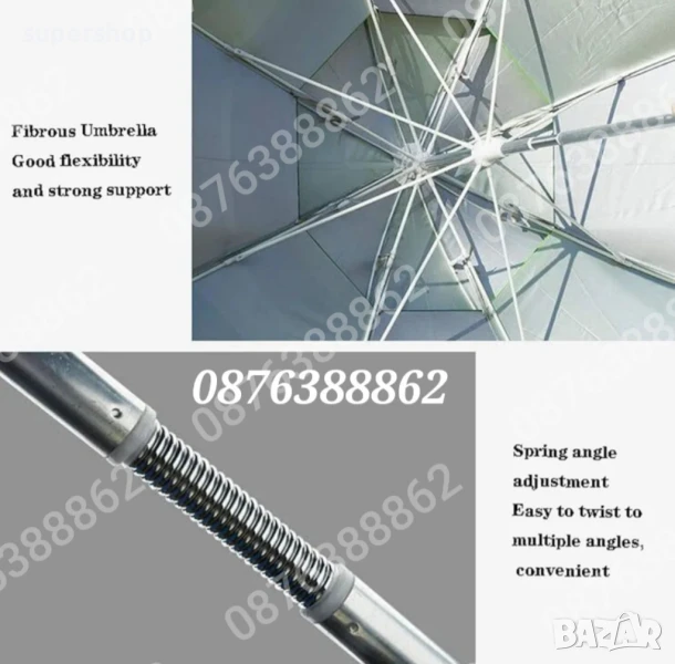 Чадърът е изключително подходящ за използване на плажа, в градината, тераса, къмпинг или риболов.