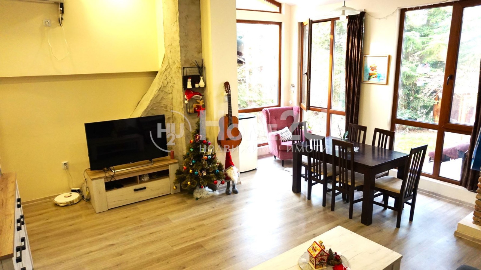 Просторна спалня, дневна с панорамни прозорци, голяма баня с тоалетна