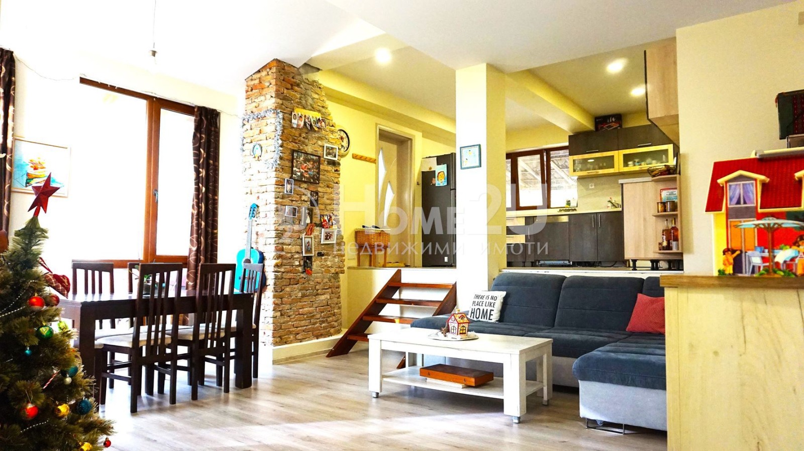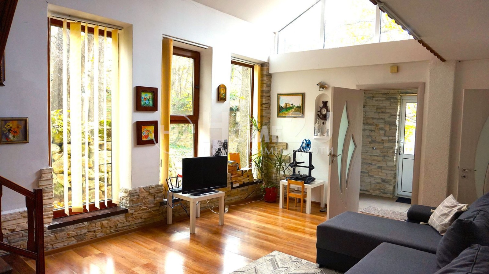 Огромна дневна с високи тавани, кухня, баня и перално помещение
