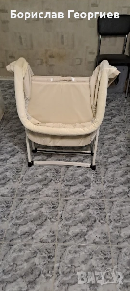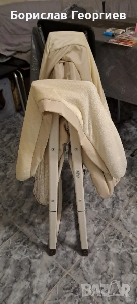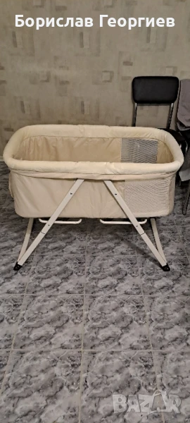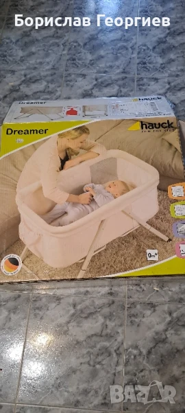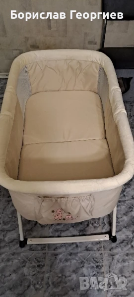 Бебешко сгъваемо легло Hauck с люлеещи се крака. Коша се маха и може да се пере. Размер на вътрешната част е дължина 70 см, ширина 50 см. Почти не е използвано в перфектно състояние.