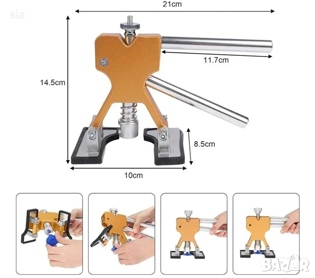 Изтегляч с две регулируеми крачета, идеален за премахване на вдлъбнатини.