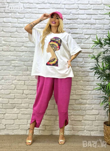 Ефектен уголемен комплект, панталон с блуза, лице → Обява 51037599