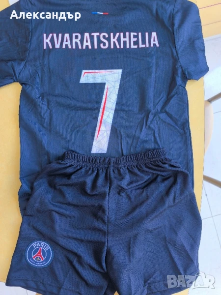 нов екип на ПСЖ Квича Кварацкелия размер 140см със гащета в комплект. Разгледайте и другите ми обяви.