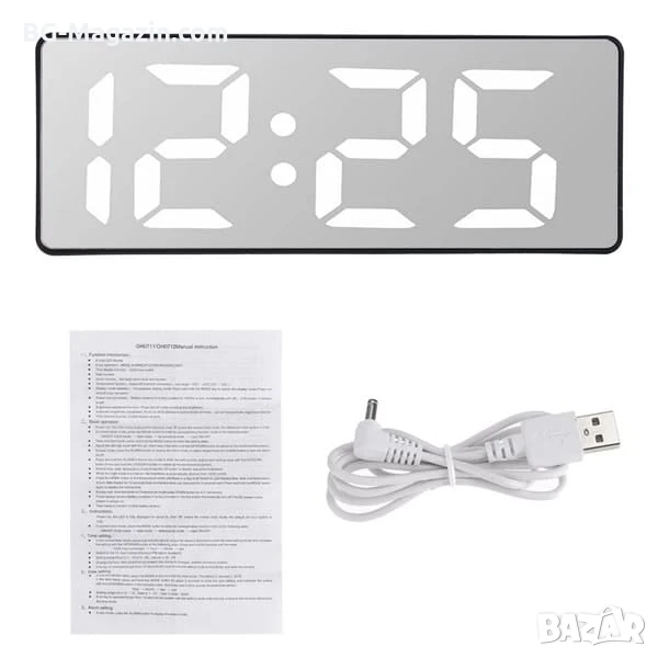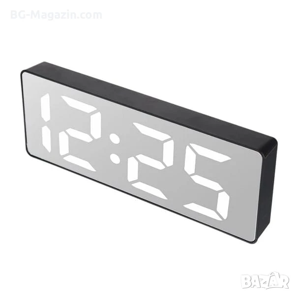 – Елегантен дизайн: Огледалният дисплей придава на часовника модерен и изтънчен вид.