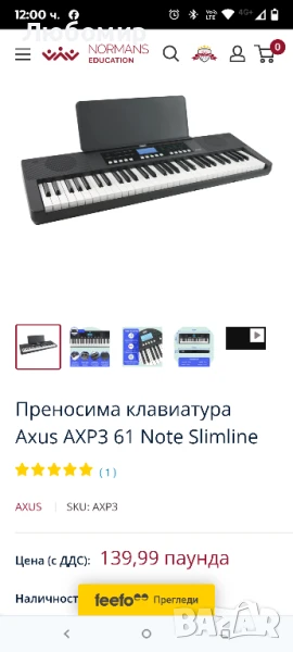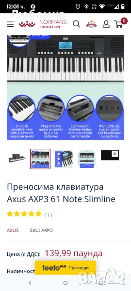 Открийте преносимата клавиатура Axus AXP3, изтънчен и богат на функции инструмент, предназначен както за начинаещи, така и за напреднали музиканти.С 61 стандартни клавиша, които предлагат чувствителност на допир, тази клавиатура осигурява изразително и динамично изживяване при свирене. Елегантният ѝ дизайн включва LCD дисплей с водносиня подсветка, което подобрява видимостта и добавя модерен щрих към външния ѝ вид.AXP3 се гордее с впечатляваща полифония от 32 гласа, заедно с обширна библиотека от 450 гласа и 150 ритъма, обслужващи широк спектър от музикални жанрове и стилове. Освен това, клавиатурата включва една демо песен, музикална библиотека от 120 произведения и разнообразие от основни.музикална библиотека от 120 произведения и разнообразие от основни функции като транспониране, метроном и корекции на октавите, за да усъвършенствате уменията си за свирене. Бутоните за директен глас и ритъм позволяват незабавен избор, което улеснява превключването на звуци в движение. Възможностите за запис и възпроизвеждане, заедно с режимите на акорди, обучение и звук, предлагат безкрайни възможности за учене и творчество.Опциите за свързване включват жак за слушалки, жак за педал за сустейн и USB към HOST за MIDI и аудио, което осигурява гъвкавост при употреба. Захранван от електрическата мрежа или 6 x AA батерии и оборудван с вградени високоговорители и усилвател, AXP3 предлага както преносимост, така и мощност. Компактните му размери и оборудван с вградени високоговорители и усилвател, AXP3 предлага както преносимост, така и мощност. Компактните му размери и лекият дизайн с удобна дръжка за носене го правят идеален избор за музиканти, които ценят както производителността, така и удобството.