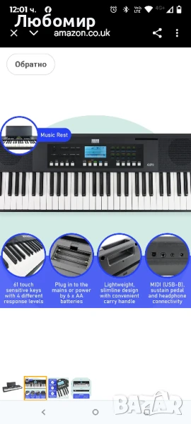 Axus 61-клавишно пиано, преносимо, чувствително на допир, леко и тънко, с дръжка за носене, захран